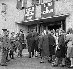 When the United States Army advanced into German-occupied territory during the final phase of the Second World War, its troops were often confronted, sometimes in the middle of battles, with traces of the crimes committed in concentration camps. The care of the mostly emaciated and seriously ill "Muselmänner",[a] and the burial of the thousands of prisoners who had died by exhaustion during death marches or by shooting proved to be a difficult task for the US Army.[4]