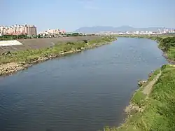 The Dahan River (Chinese: 大漢溪, also spelled Tahan) is a river in northern Taiwan. It originates in Hsinchu County and then flows through Taoyuan City and New Taipei City for 135 km, before it joins Xindian River in Taipei to form the Tamshui River. The upper reaches of the Dahan are also known as Takekan Creek (Chinese: 大嵙崁溪; Pe̍h-ōe-jī: Toā-kho-khàm-khe) or Taigang Creek (Chinese: 泰崗溪). An alternative historical name for the Dahan is the Shihmen River (Chinese: 石門溪).
