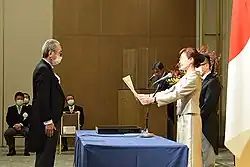 Kimura received the certificate of the Person of Cultural Merit from Hinako Yokota (November 4, 2020) He won the award for best director at the 33rd Japan Academy Prize for Mt. Tsurugidake.[1]