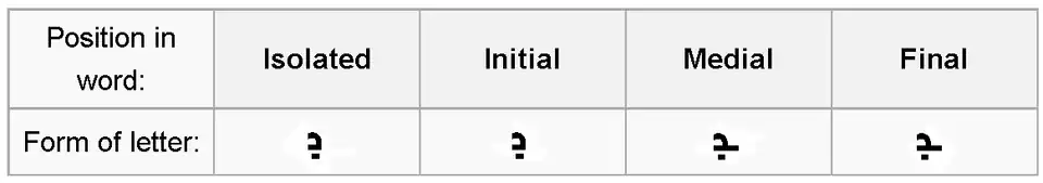 Position in word: | Isolated | Final | Medial | Initial |