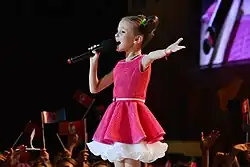 In January 2017, Tuleshova took part in the international singing competition, Hopes of Europe, where she won the grand prize. Later that same year, she auditioned for season 4 of The Voice Kids Ukraine. During the Blind Auditions, she performed Demi Lovato's song "Stone Cold". All three coaches; Monatik, Natalia Mohylevska and Vremya i Steklo, "turned their chairs" for her; she chose Monatik. After passing all the stages, she made it to the grand final. There, she performed the song "Ne tvoya viyna" and was ultimately announced as the winner of the competition at 10 years old. At the time, she was the first non-Ukrainian to win,[1] but in 2019, Georgian singer Oleksandr Zazarashvyli won the fifth season.[8]