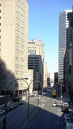 Central Station, one of Montreal's two main railway stations, is located on the street. The other, Lucien L'Allier Station, is located on the short section that was renamed. The historic Windsor Station is also located on the part that was renamed, but it is no longer used for train service due to the Bell Centre occupying the area where the tracks were located.