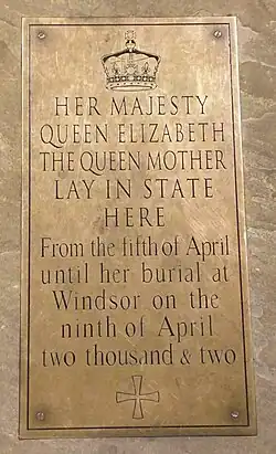 - ^ "Mourners visit Queen Mother's vault". BBC. 10 April 2002. Retrieved 18 April 2021.