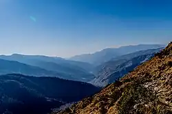 Dehradun district (Hindi: [d̪eːɦɾaːd̪uːn] ⓘ) is a district in Garhwal which is a part of Uttarakhand state in northern India. The district headquarters is Dehradun, which has also served as the interim capital of Uttarakhand since its founding in 2000. The district has 6 tehsils, 6 community development blocks, 17 towns and 764 inhabited villages, and 18 unpopulated villages. As of 2011, it is the second most populous district of Uttarakhand (out of 13), after Haridwar.[1] Dehradun district also includes the prominent towns of Rishikesh, Mussoorie, Landour and Chakrata. The district stretches from the Ganges river in the east to the Yamuna river in the west, and from the Terai and Shivaliks in the south and southeast to the Great Himalaya in the northwest. During the days of British Raj, the official name of the district was Dehra Dun.[2] In 1842, Dun was attached to Saharanpur district and placed under an officer subordinate to the Collector of the district but since 1871 it is being administered as separate district.