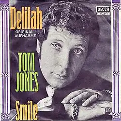 "Delilah" is a song recorded by Welsh singer Tom Jones in December 1967. The lyrics were written by Barry Mason, and the music by Les Reed, who also contributed the title and theme of the song. It earned Reed and Mason the 1968 Ivor Novello award for Best Song Musically and Lyrically.[1]