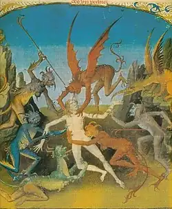 Traditionally, Buddhism affirms the existence of hells[43] populated by demons who torment sinners and tempt mortals to sin, or who seek to thwart their enlightenment, with a demon named Mara as chief tempter, "prince of darkness", or "Evil One" in Sanskrit sources.[44][45]