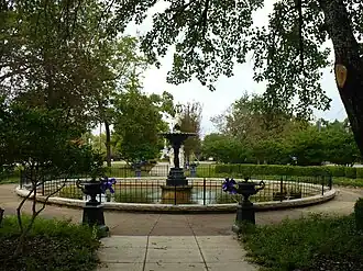 The park contains several historic structures, including a Victorian-era gazebo near the corner of Walnut Avenue and Washington Street, the Demopolis City Hall, built in 1869–70 as a courthouse annex, and the old Presbyterian Church, built in 1843 and now known as Rooster Hall. The former church served as the Marengo County Courthouse from 1868 until 1871, when the county seat was temporarily moved from Linden.[3] The park's center features a large cast iron fountain that was installed in 1895. The park is often used for the city's festivals, most notably for many of the Christmas on the River events.[6] The park was added to the National Register of Historic Places on 29 November 1975.[1]
