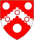 | Browne | _Arms.png)  | Gules, a chevron ermine between two chevronells and three escallops or | Brown's Ilash,[7] Langtree |