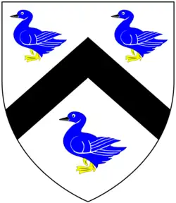 - ^ Per research conducted by Sheila Yeo of the Yeo Society [13], based on stained glass depictions of Yeo arms in churches of Petrockstowe (Yeo of Heanton Satchville) and Hatherleigh (Yeo of Hatherleigh) both in Devon. The ducks are described as of various breeds by different sources. Heraldic sources give contradictory tinctures: Argent, a chevron between three shovelers sable (Vivian, Lt.Col. J.L., (Ed.) The Visitations of the County of Devon: Comprising the Heralds' Visitations of 1531, 1564 & 1620, Exeter, 1895, p. 834) and Argent, a chevron between three mallards azure (Pole, Sir William (d.1635), Collections Towards a Description of the County of Devon, Sir John-William de la Pole (ed.), London, 1791, p. 510)