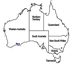 - ^ a b Ahmad Abid Munir (1991). "Two new species of Dicrastylis J.Drumm. ex Harvey (Chloanthaceae) from Western Australia" (PDF). Journal of the Adelaide Botanic Gardens. 14 (1): 87, Fig. 1, Map 1. ISSN 0313-4083. JSTOR 23874432. Wikidata Q92900977. Archived from the original (PDF) on 13 July 2020.