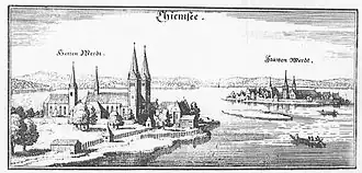 At first, the nuns monastery of Frauenchiemsee was to be the seat of the bishopric, but subsequently, the monks monastery church of the nearby Benedictine Abbey of Herrenchiemsee was chosen to be the diocesan cathedral. In fact, the seat of the bishopric was the so-called Chiemseehof in the city of Salzburg. This building nowadays is used by the parliament and the government of the State of Salzburg.