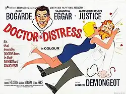 Doctor in Distress is a 1963 British comedy film directed by Ralph Thomas and starring Dirk Bogarde, James Robertson Justice, and Samantha Eggar. It is the fifth of the seven films in the Doctor series. After a one-film absence, it was the final return to the role of Simon Sparrow by Dirk Bogarde, and also the return (although in a different role) of Donald Houston. The film uses some of the characters in Richard Gordon's Doctor novels, but is not based on any of them.