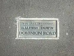"Dominion Road" is the debut single by New Zealand rock band The Mutton Birds. The song was released in 1992 as one of four singles to promote the band's debut self-titled album. Despite only spending ten weeks on the New Zealand singles charts and peaking at #31, the song has since become a New Zealand classic, being rated as the 23rd best New Zealand song of all time by the Australasian Performing Right Association in 2001.[1] The song has resulted in the installation of a brass plaque in the footpath approximately half-way down the song's namesake street, in a reference to the song's lyrics.[2]