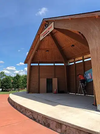 The Doylestown Township and Borough identified in a 2007 Community Park, Recreation and Open Space Plan that building an amphitheater in Central Park would be a short term priority (accomplished between 2008-2010). This came in response to 66% of resident survey respondents stating an amphitheater would be a priority.[1] In the same document it was stressed that in the planning process, it would be critical for the amphitheater to be established as a park hub, not just another structure.[1] The cost for materials and building came to $136,000 all of which came directly from 20 years of fundraising.[8] The amphitheater includes a stage, with an area for storage as well as a changing room and bathroom. The Amphitheater hosts music concerts and free movies in the summer months.[9] Previous to the construction of the physical building, the hillside on which it is located was considered a natural amphitheater and hosted its first concert series in the summer of 1995.[3]