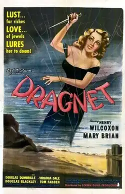Dragnet is a 1947 American crime film directed by Leslie Goodwins and starring Henry Wilcoxon, Mary Brian, Douglass Dumbrille, Virginia Dale, Don C. Harvey, and Ralph Dunn. The screenplay was written by Barbara Worth and Harry Essex. The original music score was composed by Irving Gertz.[1]