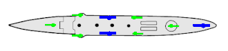 ![]() Plan of Draug Note placement of QF guns (green) and torpedo tubes (blue). ![]() The lead ship Draug at some point before the Second World War. Note QF guns in blisters along the side to allow forward fire. | |