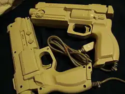 The Dreamcast video game console had several light guns released as accessories during its lifespan. The official light gun from Sega was released in Europe and Asia; in the United States, it was previewed in magazines preceding the console's release,[1] but it ultimately never released due to concerns about bad press in the wake of the Columbine High School massacre.[2][3] Instead, an officially licensed light gun was released by Mad Catz for the U.S. market.[4]