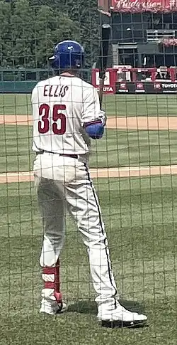 On April 16, 2023, Ellis signed a minor league contract with the Philadelphia Phillies organization.[19] Ellis played in 11 games for the Double-A Reading Fightin Phils before being elevated to the Triple-A Lehigh Valley IronPigs. In 11 games with Lehigh, Ellis batted .279/.354/.651 with 5 home runs and 19 RBI.[20] On June 1, Ellis' contract was selected to the major league roster.[21] On June 4, Ellis hit his first two home runs for the Phillies in an 11–3 victory over the Washington Nationals.[22] In 12 games for the Phillies, he went 5–for–23 (.217) with 6 walks and 4 RBI. On September 22, Ellis was designated for assignment following the promotion of Orion Kerkering.[23] He cleared waivers and was sent outright to Lehigh Valley on September 24.[24] Ellis elected free agency on October 13.[25]
