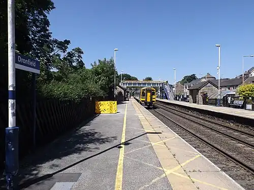 Dronfield railway station serves the town of Dronfield in Derbyshire, England, south of Sheffield, on the Midland Main Line between Chesterfield and Sheffield.