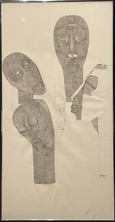 Zwelidumile Geelboi Mgxaji Mhlaba "Dumile" Feni (May 21, 1942 – 1991) was a South African contemporary visual artist known for both his drawings and paintings that included sculptural elements, as well as for his sculptures, which often depicted the struggle against Apartheid in South Africa.[1] Feni lived in exile and extreme poverty for most of his art career.