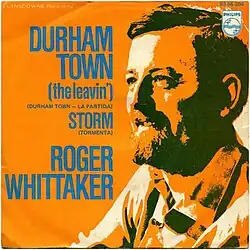 "Durham Town (The Leavin')" is a song, written and sung by Roger Whittaker, released as a single in 1969. It spent 18 weeks on the UK Singles Chart, peaking at No. 12.[1][2] In 1976, the song reached No. 8 on Canada's RPM "Pop Music Playlist",[3] while reaching No. 23 on Billboard's Easy Listening chart.[4] The song was also recorded in French translation under the title "Mon pays bleu".
