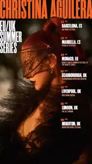 EU / UK Summer Series, also called Summer Series, was the first promotional tour by American singer Christina Aguilera, in support of her three-part Spanish-language ninth studio album, Aguilera (2022).[1] The tour was announced following the release of the EP La Fuerza, the album's first part, with the first three UK shows going on sale on February 4, 2022. It began on June 25, 2022 in Mallorca, Spain, and concluded on August 6, 2022 in Brighton, England, lasting eight shows across Europe. Union J served as the opening act for the UK shows.