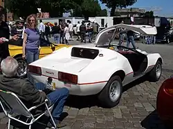 The chassis was an unshortened Volkswagen Type 1 platform with a 2,400 mm (94.5 in) wheelbase, while the car was 4,240 mm (166.9 in) long, 1,780 mm (70.1 in) wide, and a mere 1,040 mm (40.9 in) high. First mentioned in 1984, a targa-roofed 2+2-seater version called the 2 Plus was also available, with only a slight weight penalty.[5][6]