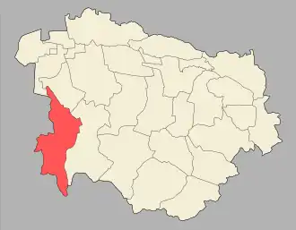 The Prigorodny District was part of the Chechen-Ingush ASSR.[16][17] Prior to the deportation of the Chechens and Ingush, the population was mostly made up of Ingush (28132 out of 33753).[18] In 1944, with the deportation of the Chechens and Ingush and the abolishment of their ASSR, the district was transferred to North Ossetian ASSR.[16][17] Soon, on 8 May 1944, the North Ossetian Regional Committee, headed by Kubadi Kulov, replaced the toponymy in the former Chechen and Ingush raions of Chechen-Ingush ASSR. At the same time, the destruction of Chechen and Ingush cemeteries began, the tombstones from which were used for building material, and 25-35 thousand Ossetians from Georgian SSR were resettled to the Prigorodny District.[19]