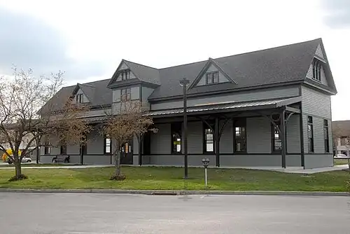 East Stroudsburg is an historic train station built by the Delaware, Lackawanna and Western Railroad in 1856. The station served as the local stop for both East Stroudsburg and Stroudsburg, Pennsylvania. The depot, recently known locally as the Dansbury Depot for the restaurant that used the building, is located on Crystal Street in East Stroudsburg. Service to East Stroudsburg ended on January 6, 1970, when the Erie Lackawanna Railway discontinued the Lake Cities. [3] A proposal is currently in place to extend NJ Transit service to a rebuilt East Stroudsburg station. In spring 2021, Amtrak announced plans for potential New York–Scranton route. It is currently used by some of Steamtown National Historic Site's excursion trains.