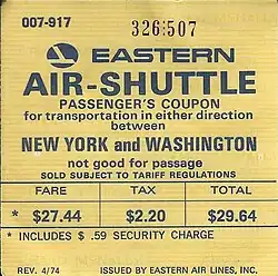 Eastern Air Lines Shuttle (or Eastern Air Shuttle) was the brand name of Eastern's air shuttle that began on April 30, 1961. The shuttle originally flew between New York City, Boston, Washington, and Newark. The shuttle became part of the fabric of business and government travel in the northeast corridor. No reservations were needed; passengers just showed up at the terminal, and if a plane was full, another was rolled out.