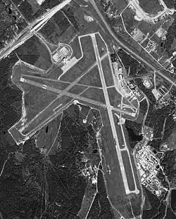 Easterwood Airport (IATA: CLL, ICAO: KCLL, FAA LID: CLL, Easterwood Field) is a regional airport in College Station, Texas, serving Texas A&M University, Bryan-College Station, and Brazos County, Texas. Accessed via FM 60 (Raymond Stotzer Parkway), it is 3 miles (4.8 km) southwest of the center of College Station,[2] and 0.25 miles (0.40 km) from Texas A&M University. There is no public transportation from Easterwood Airport to the surrounding cities; however, in the fall of 2019, a new university bus route was established to connect Easterwood Airport with the Engineering Quad and the Texas A&M Hotel and Conference Center.[3] The airport bus route is ostensibly available only to those with a University ID or Brazos Transit District ID, however, this requirement is not enforced.[4] Despite owning and managing the airport, the university offers no aviation courses.