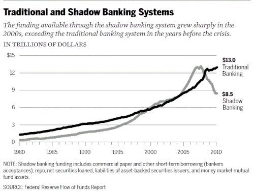 President Bush and his economic experts did not adequately address fundamental changes in the banking sector which had taken place over the two decades prior to the crisis. The essentially unregulated shadow banking system (e.g., investment banks, mortgage companies, money market mutual funds, etc.) had grown to rival the traditional, regulated depository banking system but without equivalent safeguards. Nobel laureate Paul Krugman described the run on the shadow banking system as the "core of what happened" to cause the crisis. "As the shadow banking system expanded to rival or even surpass conventional banking in importance, politicians and government officials should have realized that they were re-creating the kind of financial vulnerability that made the Great Depression possible—and they should have responded by extending regulations and the financial safety net to cover these new institutions. Influential figures should have proclaimed a simple rule: anything that does what a bank does, anything that has to be rescued in crises the way banks are, should be regulated like a bank." He referred to this lack of controls as "malign neglect."[56]