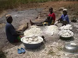 Sparsely populated and landlocked, the Central African Republic is overwhelmingly agrarian.[14] The vast bulk of the population engages in subsistence farming and 55% of the country's GDP derives from agriculture.[14] Subsistence agriculture, together with forestry, remains the backbone of the economy of the Central African Republic (CAR), with more than 70% of the population living in outlying areas.[15]