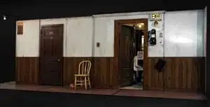 In 1961, Kienholz completed his first large-scale installation, Roxy's, a room-sized environment which he showed at the Ferus Gallery in 1962. Set in the year 1943, Roxy's depicts Kienholz's memories of his youthful encounters in a Nevada brothel complete with antique furniture, a 30s era jukebox, vintage sundries, and satirical characters assembled from castoff pieces of junk.[9] This artwork later caused a stir at the documenta 4 exhibition in 1968.[10]
