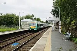 The station has passenger help points and covered seating areas available on both platforms which are linked by a subway. There are also toilets at the station which are open when the station is staffed. The station has a free car park (operated by Saba Parking) and a taxi-rank at its main entrance.[1] There is also a cycle rack at the station entrance.