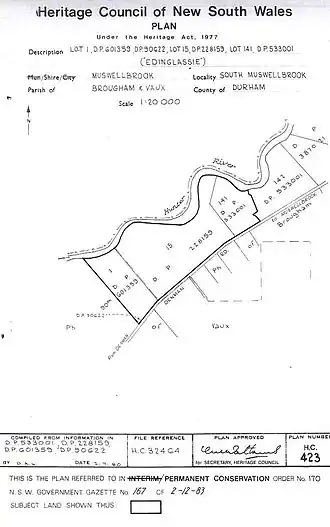- ^ a b c d e f g h i j k l m n o p q "Edinglassie". New South Wales State Heritage Register. Department of Planning & Environment. H00170. Retrieved 1 June 2018.