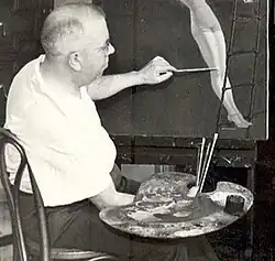 ![]() Edward M. Eggleston in 1937, painting an Image used for the Great Lakes Exposition posters and pamphlets. | |