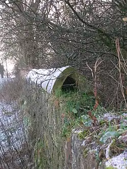 The Deer Park ice house lay close to the lane leading to Eglinton Kennels from the Tournament Bridge. It is marked as an Ice House on the 1911 OS map, its later date, style of construction and position close to the deer park suggests that it was a place linked to the preparation and storage of venison from the deer park. Ice for this may have come from the nearby fishpond; emptied into the building via the two hatches in the roof. At this 'late' date in the history of the estate it may have been a commercial activity.[58]