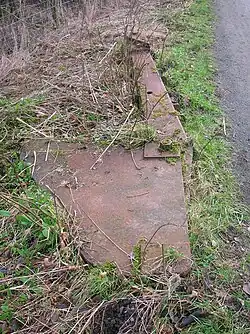 A large number of cottages, such as Fergushill, Higgins (on the old toll road), Millburn, Chapel Croft, Diamond, Gravel, Flush and Hill, and some miners rows existed at one time or other, together with place names such as Swine Park,[38] Chapelholm, Knadgerhill, Irvine March wood, Meadow plantations and Long Drive; an area close to Eglinton Mains called 'The Circle', Crow and Old Woods, The Hill, also known locally as Foxes Lodge,[41] etc., etc. Thomas and Anne Main once lived at The Hill cottage and their daughter Hetty was born there; they moved to Eglinton Mains farm.[35] The 'Circle' was the large circle in the middle of a 'star burst' belvedere feature of the 1747 estate plantings. The area between Corsehillhead and Five Roads was known as 'Brotherswell'.[42]
