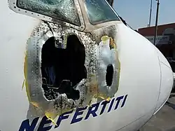 |  The melted nose of EgyptAir's Boeing 777 Nefertiti after the fire | |