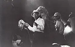 Toho was on the verge of disbandment due to the three major labor disputes that occurred at the studio during the late 1940s.[62] According to Akira Tsuburaya, his father had to sneak around the Japanese police and U.S. tanks deployed during these strikes and disputes in order to get to work.[63] To repel the police, the labor strikers erected a barricade, using a large fan, made by the special effects department of the company, which was equipped with the Zero fighter engine that Tsuburaya had used during the war. These events led to the creation of Shintoho;[59][62][63] Tsuburaya would create the effects for the studio's first film, A Thousand and One Nights with Toho (1947).[64]