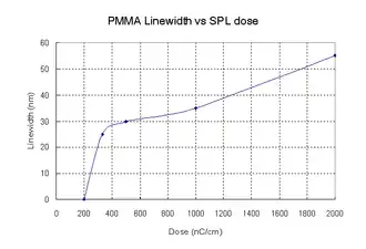 - ^ Cumming, D. R. S.; Thoms, S.; Beaumont, S. P.; Weaver, J. M. R. (1996). "Fabrication of 3 nm wires using 100 keV electron beam lithography and poly(methyl methacrylate) resist". Applied Physics Letters. 68 (3): 322. Bibcode:1996ApPhL..68..322C. doi:10.1063/1.116073.