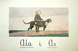 The most famous sentence from Elementarz by Falski was "Ala ma kota" ("Ala has a cat"), which became a symbol of the textbook in colloquial Polish. However, this sentence only appeared in Elementarz from the 1930s to 1949.[6][10] The title "Ala" from the textbook is used in the memoirs of Alina Margolis-Edelman, which inspired the monodrama Ala by Zuzanna Fijewska-Malesza, directed by Agnieszka Glińska, which premiered in 2011.[6]