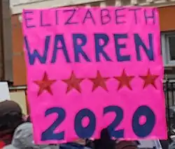 The 2020 presidential campaign of Elizabeth Warren was a campaign from the senior United States senator from Massachusetts. It began with Warren's formal announcement on February 9, 2019, at a rally in Lawrence, Massachusetts, at the site of the 1912 Bread and Roses Strike.[10][11] The announcement followed widespread speculation that she would run after supporters urged her to run in the 2016 Democratic presidential primaries.[12] In 2018, Warren had been considered a top contender for the 2020 Democratic presidential nomination.[13]