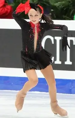 In 2009, Tuktamysheva won the silver medal at the Russian Championships after placing fifth in the short program and first in the free skating.[22] She placed second with a margin of 0.67 points behind champion Adelina Sotnikova, who is half a year older than Tuktamysheva.[23] Mishin said his student was Russia's "main hope for the gold medal at the Sochi Olympics".[16] Despite her medal, she was not sent to any ISU Championships, including Junior Worlds because she was not old enough according to ISU rules.