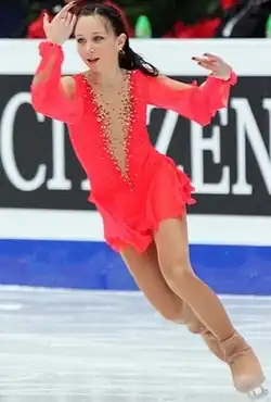 Tuktamysheva started skating at the age of four after meeting girls interested in the sport at a summer camp.[7][14] Her first coach was Svetlana Veretennikova in Glazov. Alexei Mishin observed Tuktamysheva at a competition in Belgorod but did not invite her into his group, considering her technique too incomplete.[7][15] A year later, he saw her again and changed his mind due to her ability to jump high,[7] but she had to rework the technique on all of her jumps.[8] Since her family could not afford to move to a big city, she remained in Glazov, continuing to train under Veretennikova, but regularly visited Mishin in Saint Petersburg, where she lived in a dormitory.[16][17] The train journey from Glazov to Saint Petersburg took 27 hours.[7] Until the summer of 2011, she would spend an average of one to two weeks in Saint Petersburg and the rest of the month in Glazov.[7][11][18]