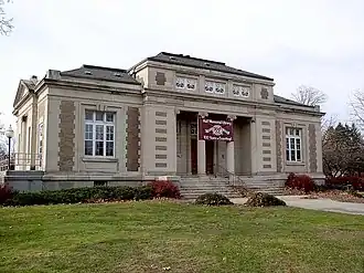 Hall Memorial Library, a Neo-Classical Revival building built of brick and limestone, is one of the largest buildings in the historic district. The historic district also includes two churches.[2] The district is notable for its well-preserved examples of Federal-style architecture from the early 19th century, as well as other historic buildings dating from the late 18th century to the early 20th century.[4]