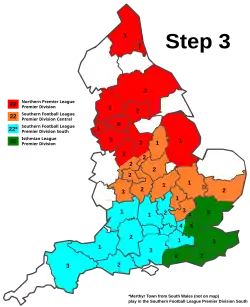 | 7 (Step 3) | 88 | Northern Premier League Premier Division | Southern League Premier Division Central | Southern League Premier Division South | Isthmian League Premier Division | ||||||||||||||||||||||||||||