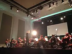 Salonen and the Philharmonia Orchestra have worked on multi-disciplinary festivals together, including Woven Words: Music begins where words end to celebrate the centenary of the birth of Witold Lutosławski, Salonen's mentor.[33] They also created the award-winning RE-RITE installation, which was first exhibited in London in 2009 and has since travelled to Portugal, China, Turkey, Germany, and Austria. The digital residency allows members of the public to conduct, play and step inside the Philharmonia Orchestra with Salonen through audio and video projections of musicians performing The Rite of Spring.[34] They followed-up with another installation, Universe of Sound, which was based on Gustav Holst's The Planets, debuted at London's Science Museum,[35] and won the 2012 Royal Philharmonic Society Award for Audiences and Engagement.[36] Salonen and the Philharmonia Orchestra, in partnership with Music Sales Group, Rite Digital, and Touch Press, released a successful iPad app, "The Orchestra". Slate called the interactive tour through orchestral history "the perfect classical music app."[37] In the autumn of 2016 the Philharmonia Orchestra launched a digital takeover of the Southbank Centre, featuring the first major virtual-reality production from a UK symphony orchestra.[38]
