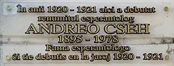 The first Esperanto–Romanian dictionary was written by Marta Frollo in 1889, and the Esperanto community in Romania was pioneered by Henriko Fischer-Galați in the 1900s. The Romanian Esperanto Society was founded in 1907.[1] Ethnic Hungarian priest Andreo Cseh was a major figure of the Romanian Esperantist movement in the 1920s.[2] An Esperantist group in Cluj was arrested in 1922 after the green star of Esperanto was mistaken for a communist star, but the head of the resulting military tribunal absolved the group and described Esperanto "a very beautiful cultural movement".[3]